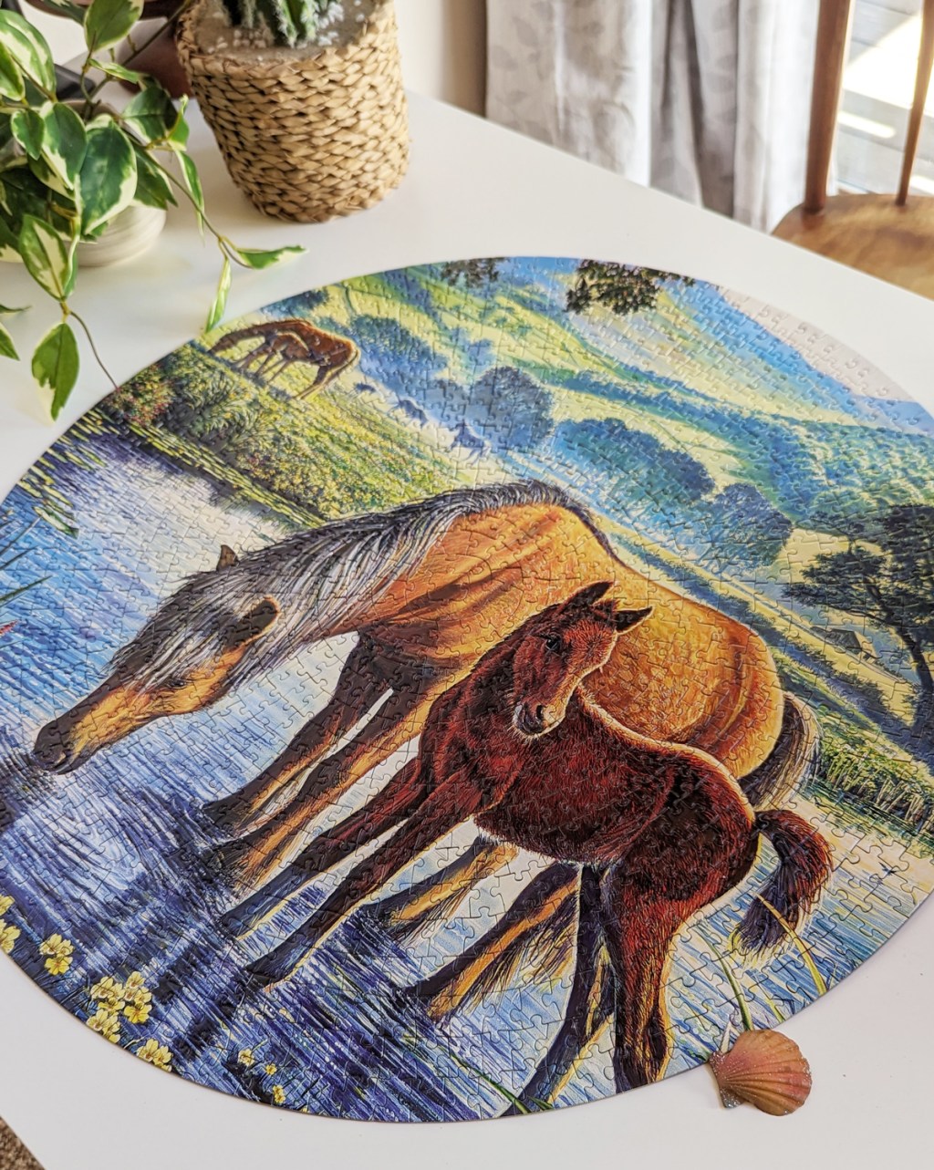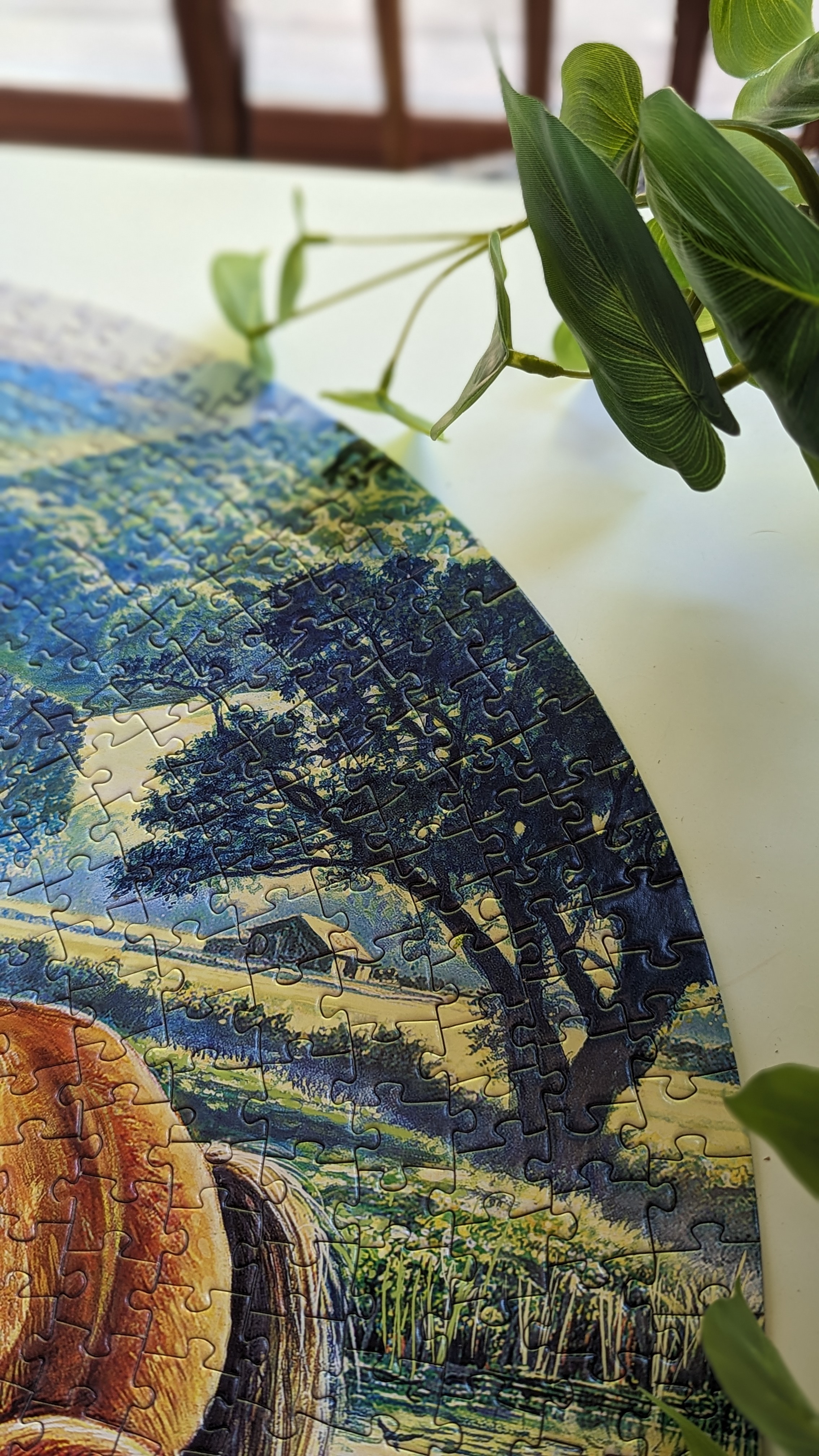 The exact one I did is no longer available, but you can find the same image in a rectangular puzzle by a different brand. The rectangular shape adds some interesting new elements not seen in the round version I completed. You’ll notice a large tree, beautiful flowers, small creatures, and many other well-defined details. This makes me think the version I’m linking to might be easier than the one I did.