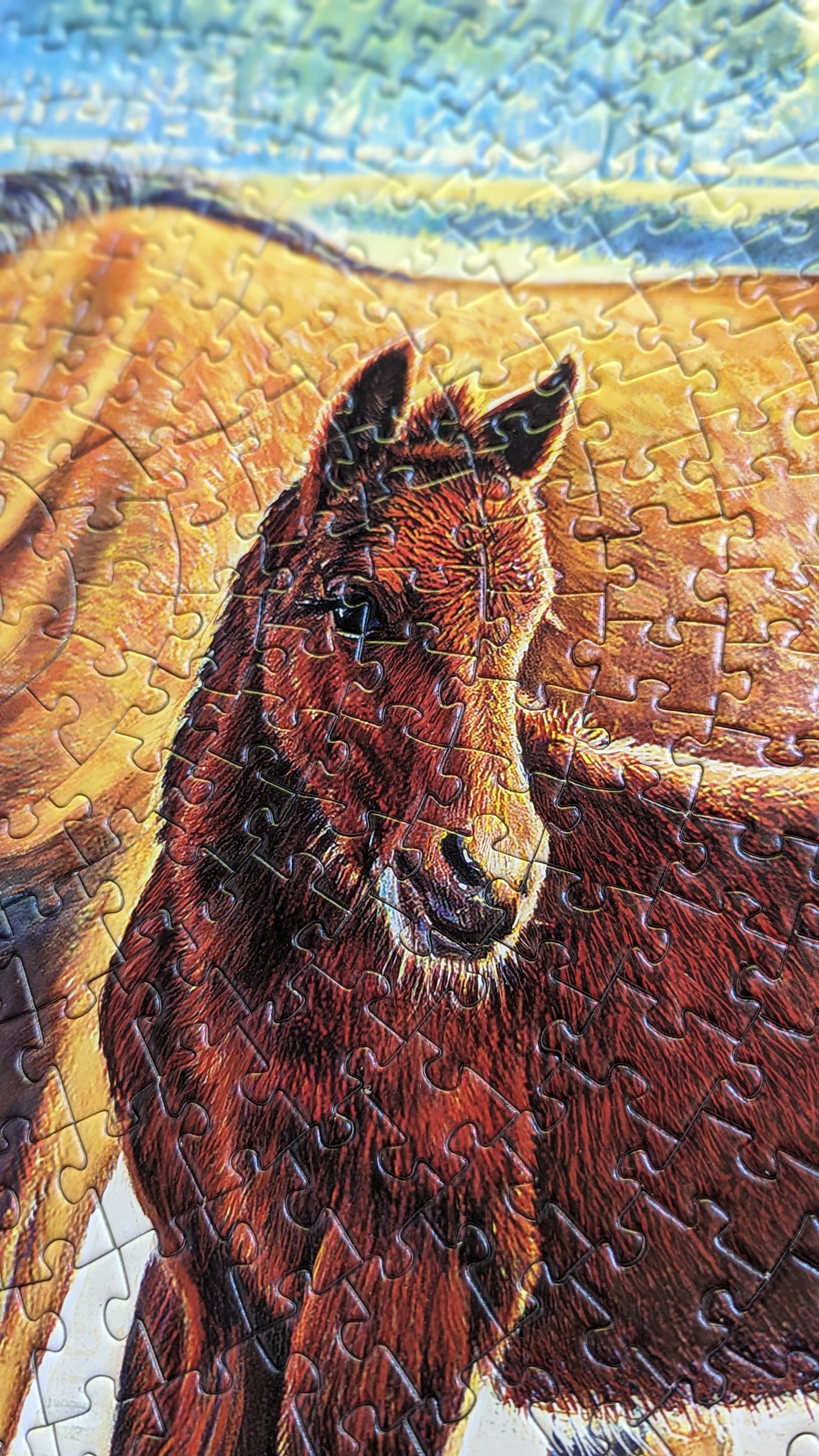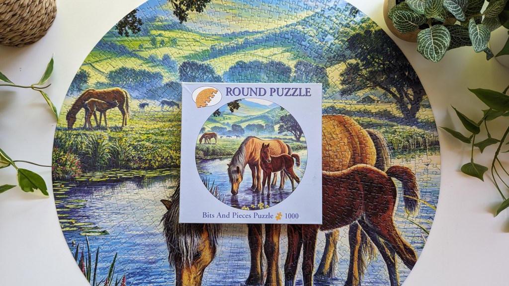 Today’s puzzle is ‘Fell Pony’ by Bits & Pieces with artwork by Steve Crisp. I just love the artwork on this puzzle. I found it at a thrift store (nothing new there!) a few months ago and fell in love with this scene. I’m going to be honest though. This puzzle kind of kicked my butt.😅
