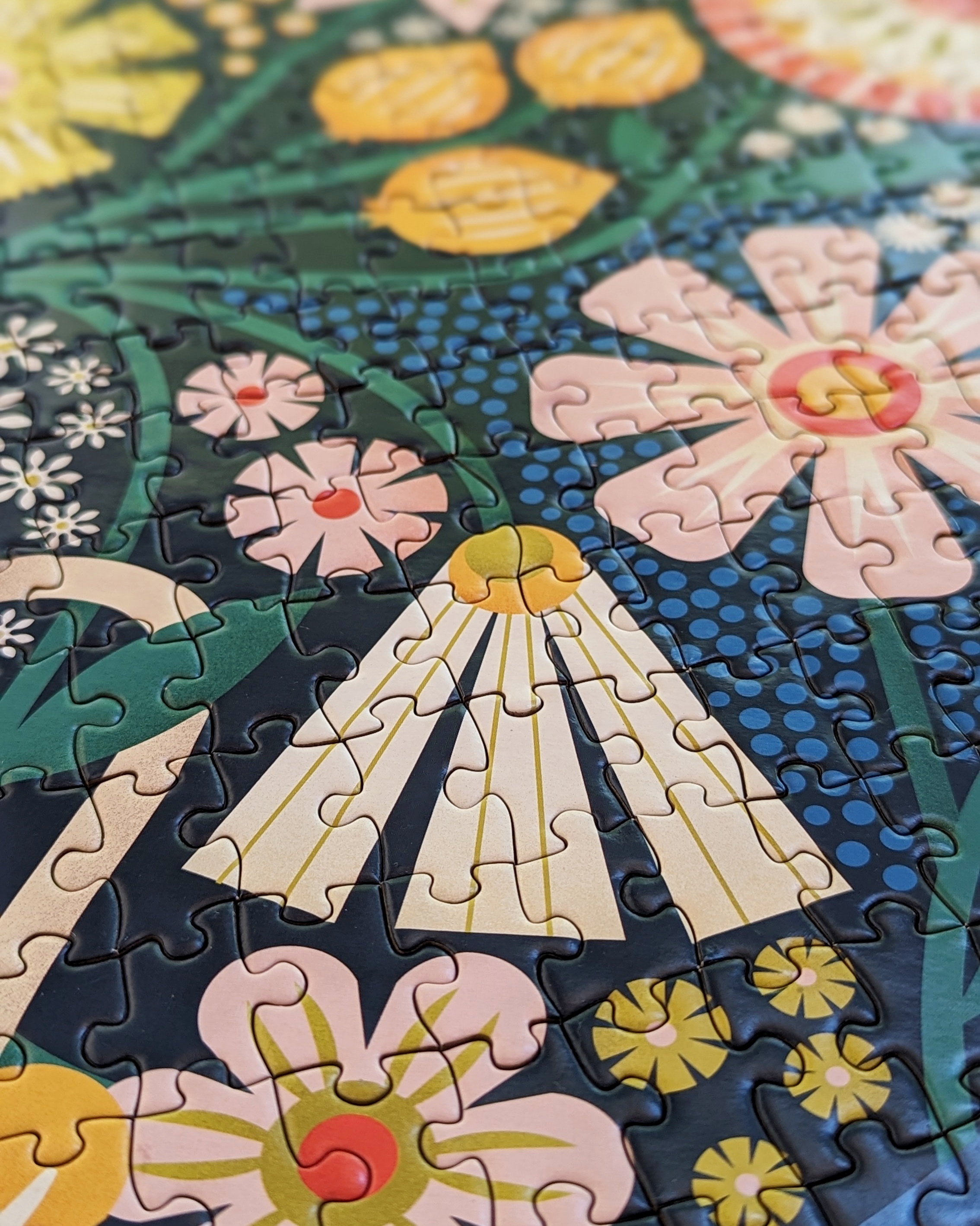 This is Heart Bouquet by Seltzer Goods which features the art of Bailey Sullivan. This is one of my favorite puzzles that I’ve put together recently. It was so nice that I actually built it twice. The first time was upstairs with my husband and son at my son’s request. and then again the following day, more formally on my desk for the above video.