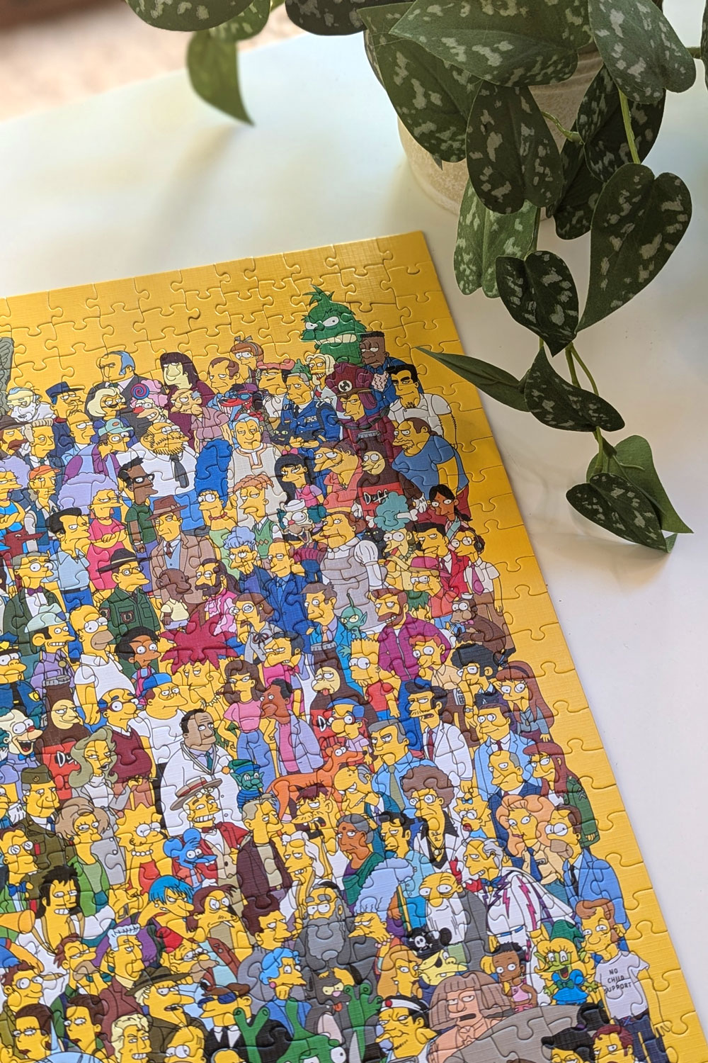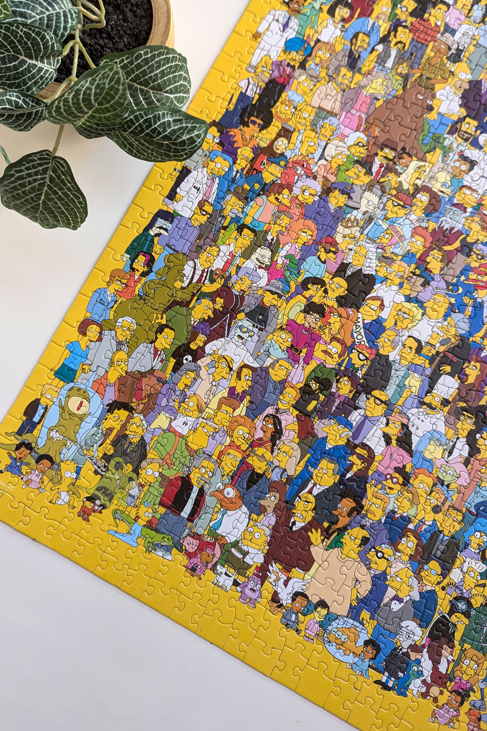 ‘The Simpsons Cast of Thousands’ puzzle is a unicorn puzzle of mine and so I was thrilled to find it at my local thrift store a few weeks ago. Growing up, my brother and I were obsessed with The Simpsons. We rarely missed an episode and would watch reruns whenever they were on.